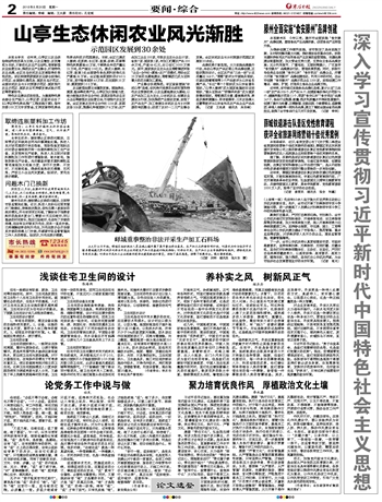 本报山亭讯 近年来,山亭区以农业供给侧结构性改革为主线,以农业增效、农民增收为目标,不断优化农业产业结构,培育新型农业经营主体,推进农业产业融合,打造特色农业品牌,全区生态休闲农业发展取得阶段性成效。该区相继荣获国家农业综合标准化示范区、全国绿化模范县、国家生态示范区、全国休闲农业与乡村旅游示范区、国家现代农业示范区、国家农业可持续发展试验示范区等荣誉称号。