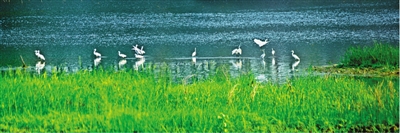 今年以来,薛城区综合治理大气污染,完成企业烟尘治理和设施改造7家,全面落实河长制,深入开展清河行动,关停取缔非法养殖场和“散乱污”企业399家,出境河流水质持续改善。图为蟠龙河湿地良好的生态环境引来众多鸟类栖息。 (张生 陈华 摄)
