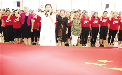 右图:滕州市龙泉街道中心幼儿园举行师德宣誓活动,增强幼儿教师教书育人的使命感、责任感。 (侯志龙 摄)