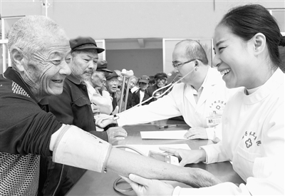 ➝近日,山亭区店子镇卫生院组织医护人员开展“敬老院里献爱心 健康礼物送老人”活动,免费为镇敬老院老人查病治病、讲解疾病预防知识和保健常识,为老人们送上一份健康礼物。 (刘品 王鹏 摄)