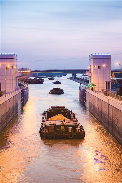 船闸服务水平持续提升。枣庄运河段辖区现有船闸四座,分别为台儿庄一线、台儿庄二线和万年闸、刘庄船闸,在建船闸一座,为万年闸复线船闸。台儿庄二线船闸为京杭运河长江以北的第九个梯级,也是京杭运河上溯进入山东省的第一个渠化梯级,台儿庄一、二线船闸年单向设计通过能力合计4300万吨,开创了京杭运河山东段二级船闸双线运行的先例。2016年台儿庄一、二线船闸实际通过量已经达到9200万吨。万年闸复线船闸设计标准为二级船闸,设计年单向通过能力为2900万吨,于2016年7月开工建设,计划2019年下半年竣工。建成之后将大大提高船闸服务水平,进一步完善区域综合交通运输体系,对确保京杭运河航道安全、高效、畅通、不间断运行意义重大。