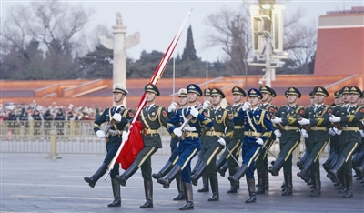 1月1日晨,北京天安门广场举行隆重的升国旗仪式。