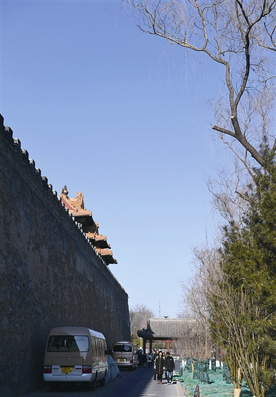 为提升广大观众的参观质量,缓解故宫神武门外观众疏散压力和景山前街城市交通压力,故宫博物院于2019年1月1日开始,开放神武门外至东华门外的故宫城墙和筒子河之间的通道。 (新华社发)