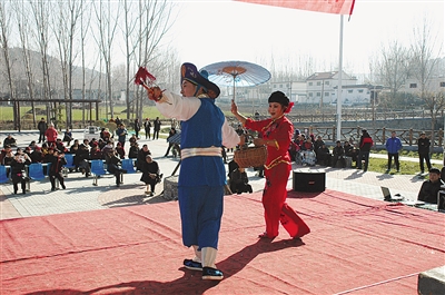 上午9点50分,随着一声锣响,大戏正式开演。《巧遇》《走娘家》《钱知县征婚》等活灵活现的小品、小戏相继演出,大伙看得如痴如醉。85岁的关传英老人告诉记者:“过去村里穷,请不起戏班子。我自打17岁嫁到常山,这还是头一回在家门口看戏哩,与在电视上看感觉就是不一样。” (下转第二版)