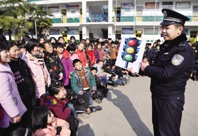 日前,山亭区店子镇实验学校邀请当地公安民警为学生上安全教育课,讲解安全燃放烟花爆竹、交通安全等方面的知识,让学生安全快乐度寒假。