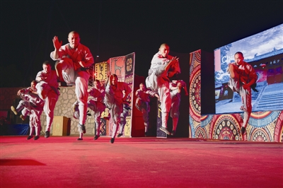 2月17日,在埃及阿斯旺市,少林寺武僧团在阿斯旺国际文化艺术节上表演中国功夫。