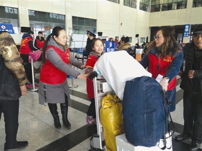 春运期间,学生流、探亲流、务工流等相叠加,为了让旅客走得了走得好,志愿者们集中开展40天的秩序维护、引导咨询、便民利民、帮扶重点旅客、交通安全劝导等方面志愿服务,向老弱病残孕等有需要的旅客提供一站式无缝接续爱心服务,有效营造了温馨、舒适、安全、便捷的出行环境,让辛苦的春运旅途变得更温暖、更润心、更和谐。