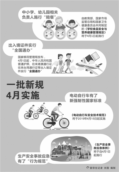 中小学、幼儿园相关负责人施行“陪餐”,出入境证件实行“全国通办”,电动自行车有了新强制性国家标准……4月起,这些新规将开始影响你的生活。