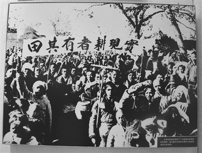 这是在西柏坡纪念馆拍摄的照片,反映的是冀中农民举行拥护土地改革运动大会(4月9日摄)。 (新华社记者 朱旭东 摄)