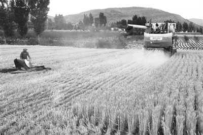 5月30日,村民在山东省枣庄市山亭区凫城镇文王峪村收获小麦。 新华社发(王启蒙 摄)