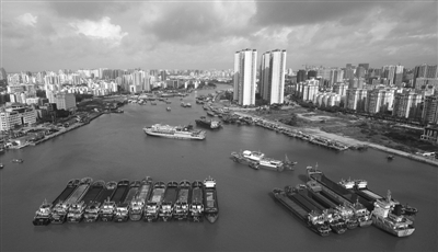 当日,中央气象台发布台风蓝色预警,海口附近海域的大部分船舶已到就近港口避风,确保安全。 (新华社记者 杨冠宇 摄)