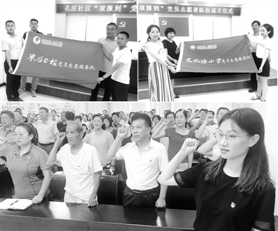 7月26日,枣庄日报社、市中区文化路小学党员志愿服务队在市中区文化路街道孔庄社区正式成立并举行了授旗仪式。在授旗仪式上,百余名党员志愿者学习了《农村基层组织工作条例》《党员教育管理工作条例》,重温了入党誓词并进行了宣誓。随后党员志愿者走访慰问了辖区部分困难家庭。