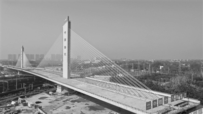 7月30日凌晨,经过90分钟惊心动魄的空中“飞越”后,由中建交通建设集团有限公司施工的重达8万余吨超长转体双翼斜拉桥——河北省保定市乐凯大街横跨京广铁路大桥实现空中完美转体合龙,打破了世界桥梁建设史上转体重量、转体跨度、转铰直径的纪录。 (新华社发)