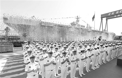 9月25日上午,中国海军首艘两栖攻击舰下水仪式在上海举行。