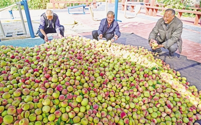10月20日,水泉镇田坑村农民在分拣冬桃。