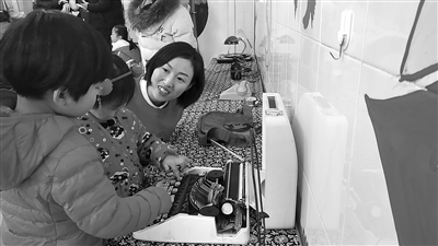 近日,市实验幼儿园举行“传承家乡文化 共筑和谐家园”庆新年亲子游园活动,邀请家长共同参加,以亲子游园的形式,让孩子们认识家乡、热爱家乡优秀传统文化。图为老师给幼儿讲解上世纪常用的老物件。 (宗艳 摄)