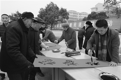 启动仪式上,参与文化下乡的演员们表演了歌曲、舞蹈、戏曲等节目,吸引众多镇驻地群众前来观看,引来阵阵掌声。现场,10余位书画家挥毫泼墨,写春联送福字。他们还根据群众的需求,现场创作个性化的春联作品,既有辞旧迎新的美好祝愿,也有充满喜庆和美好祝福的新春吉语,还有歌颂生活、憧憬美好未来的心声写照。现场人头攒动,群众对书法家们的作品赞不绝口。