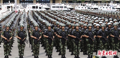 6月29日,驻疆武警部队反恐维稳誓师大会在乌鲁木齐举行。中共中央政治局委员、中央政法委书记孟建柱出席驻疆武警部队反恐维稳誓师大会并讲话。他强调,要坚决贯彻落实习近平总书记重要指示和中央政治局常委会议精神,进一步增强大局意识、政治意识、责任意识,提前防范、掌握主动,依法严厉打击暴力恐怖犯罪,切实提升各族群众安全感,保障各族群众安居乐业。 (新华社)