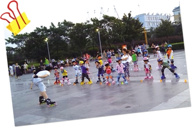 乐乐的妈妈孙女士说:“虽然乐乐年龄还小,但我从网上看学习轮滑,能提高孩子的心肺功能、平衡能力和身体协调性之外,还能让家长在陪孩子练习轮滑的时候增加与孩子的交流,让亲子关系更加融洽。何况和邻居家小孩一起玩,广场上还有那么多的小朋友,还能在锻炼孩子的交际能力之外,让我们和邻居的关系变得更加融洽。”