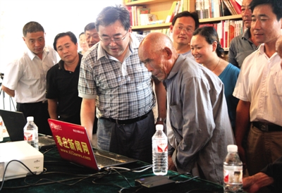 昨日,是建党92周年纪念日,枣庄日报社党委全体成员来到山亭区北庄镇西庄村,看望慰问该村的全体党员, 并送给他们一个特殊的礼物----投资30万元的网站(xz.ln632.com)正式开通。网站的开通为更好地宣传、推介西庄, 促进西庄发展,建设美丽西庄搭建起了现代传播平台。图为市委宣传部副部长、报社党委书记马林同西庄村党员一起开通网站。