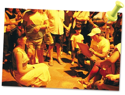 6月24日晚上8时许,光明广场上有一群人围在一起,而被人群围住的人手里拿着一支铅笔,肆意挥动着,让围观群众不由自主地看着他作画。