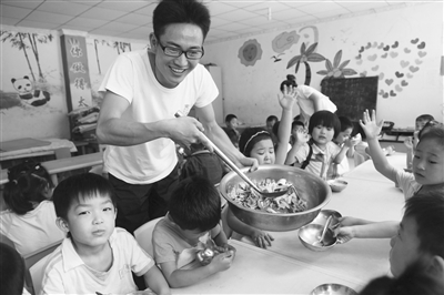 靖守举先后考察了省、市、区级的数家幼儿园,招聘了9位老师,最低也是高中学历,多数都是大专生和幼师,平均年龄在23-24岁。