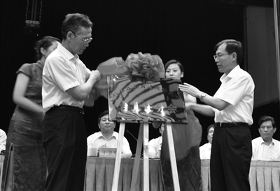 近日,全国蔡林森教育思想研究会在台儿庄成立分会,这是全国第一家研究分会。蔡林森在长期的教育实践中,确立了“没有教不好的学生”的教育思想,是当代教学流派“先学后教,当堂训练”模式的创始人,2012年10月由中国教育报刊社人民教育家研究院成立了全国蔡林森教育思想研究会。 (记者 岳娜 摄)