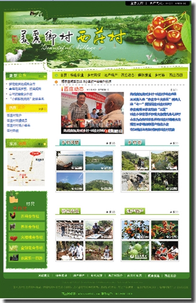 网站本着宣传西庄、推介西庄,促进西庄发展,建设美丽西庄的原则,规划设置了西庄动态、特色农业、乡村风情、地产特产、乡村游、村民合作社、西庄公告、西庄简介、西庄画册、旅游地图、媒体报道等十余个栏目,全面介绍了西庄村的风土人情、自然风光、农副产品及人文历史,为西庄村搭建起现代传播平台。美丽乡村西庄村的网址是http://xz.ln632.com 网站的开通让西庄村的农副产品板栗、核桃、金银花等作物有了一个发布销售的平台,将为增加村民的收入起到积极作用。