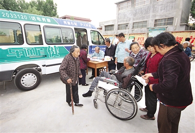 ←近日,“健康直通车”的医务人员正在滕州市龙阳镇西朱仇村卫生院为村民做检查,百姓不出家门就能享受到高质量的医疗卫生服务。自今年起,“健康直通车”行动为滕州市辖区内所有常住居民每年进行两次循环服务。