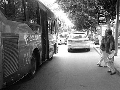 28日,记者在市中区振兴路儿童乐园附近看到,由于有市民在公交站台附近乱停车,公交车只好停在马路中间上下乘客,很是不便。“这乱停车的习惯可不好,你看,既给乘客带来不便,又留下安全隐患。”市民钱大爷说。