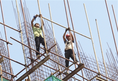 昨日是“立秋”,但36℃的高温热浪让人不免感叹:今年“秋老虎”刚一出笼就如此凶猛。在市中区一建筑工地,建筑工人们烈日下,汗湿衣背,依然坚守。