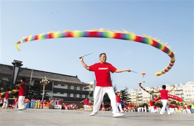 昨日,是全国第五个“全民健身日”, 以“人人热爱体育,全民强身健体;运动枣庄,幸福枣庄”为主题的“全民健身日”启动仪式在薛城区临山广场启动。广场舞、太极拳、空竹、健身秧歌等全民健身活动展演吸引了众人的目光,表演者舞得用心,观众看得专心,大家都沉醉在运动带来的快乐中。