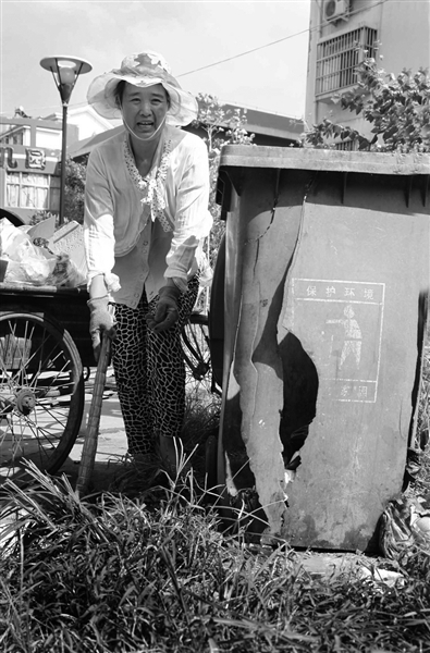 8月7日,在广场花园5号楼前,一位保洁工在用手清理桶里的垃圾。据了解,该小区多处垃圾桶因使用时间过长出现不同程度损坏,给保洁工作带来极大不便。同时,由于垃圾桶破烂不堪,垃圾经常裸露出来,给附近居民的生活造成诸多困扰。附近一居民告诉记者,他们曾多次找相关部门更换,却没有得到任何回应。
