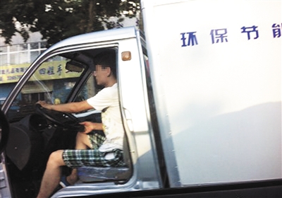 ▼ 近日,在市中区解放路三角花园附近,一辆小货车正由南向北行驶,货车驾驶室的车门已不见踪影,驾驶室内的小伙子正在悠然自得地开着车,丝毫未感到时刻潜在的危险。 (记者 王龙飞 摄)