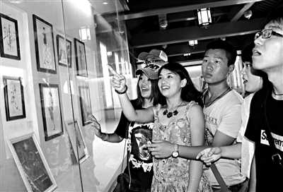 16日,“首届在京枣庄籍大学生爱乡画展”在台儿庄古城参将署开幕。画展以“走进家乡,走近崇高,走向大运河申遗”为主题,共展出清华大学、北京大学、人民大学、北京林业大学、中央美院等20多所高校80余名枣庄籍大学生创作的油画、国画、水彩画、素描速写等艺术作品120余幅。 (特约记者 张严新 记者 邵士营 实习生 刘国正 摄)