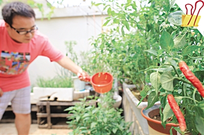 近日,家住锦龙国际的李先生,在自家不大的露天平台上,摆了十几个自制的“花盆”,里面种着辣椒、西红柿、韭菜、葱、生菜等时令蔬菜,俨然是个“屋顶菜园”。