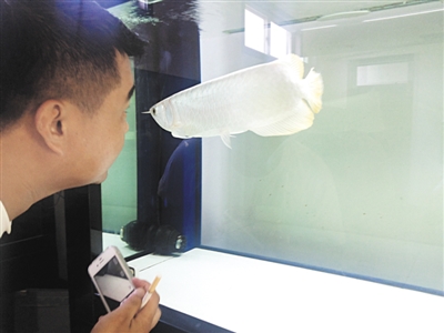 日前,记者在市中区税郭镇的张先生家中看到,他养了一条罕见的金龙鱼变异品种“雪龙鱼”。金龙鱼是热带鱼,又称其为“龙鱼”,它往往被视为神鱼,认为可以旺家镇宅,当做风水鱼来养,在很多地方,龙鱼被视作家财和身份的象征。据有二十多年养育金龙鱼经验的张先生介绍,上百万条金龙鱼中才能有一条变异鱼出现,曾有爱好者出高价他也没舍得卖。“这条‘雪龙’养了十来年了,很有感情,怎么能舍得卖啊。”张先生说。