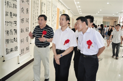 为庆祝《枣庄日报·今日滕州》创刊和枣庄日报滕州记者站成立,全国书画名家作品邀请展日前在滕州汉画像石馆举行,市有关领导观看了展览。本次展览共收到全国各省市、台湾地区及美、日等国家300多位书画家的500余幅精品佳作。展出的书画作品内容丰富,风格各异,既有传统之作,也有创新精品,无论尺幅大小,均洋溢着浓厚的时代精神。 (记者 孔浩/摄)