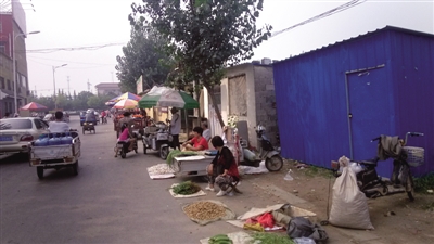 记者随后赶往韩先生所反映的东盛南路看到,东盛南路靠近光明路口的一段路上,很多商贩都把摊位直接摆到路面上,更有甚者,摊位占了马路不说,还在摊位后面拉了一道围墙,建了间屋子。放眼望去,这段路两边全是参差不齐的小屋和摊点,非常影响市容。
