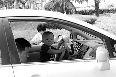 日前,一辆停在枣庄学院的汽车内,一个小男孩当起了小小驾驶员,把玩着方向盘,开心的模样仿佛已经将汽车驶向了前方。
