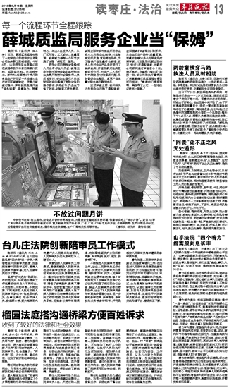 晚报讯(通讯员 程玉娇)近日,薛城区质监局收到了一封来自山东浩宇实业有限公司全体职工的感谢信。今年6月,山东浩宇实业有限公司在该局帮助下申报的果蔬汁饮料、运动型饮料、饮用纯净水、茶饮料、红酒等6个单元的食品生产许可证一次性通过生产许可证审查验收。在整个审查过程中,薛城区质监局开通“绿色通道”,急事急办、特事特办,派出5名技术人员,从厂区布局、工艺设计、质量管理、检测能力等每一个环节实施了全程“保姆式”服务。