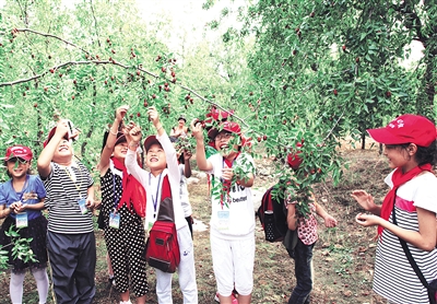 日前,市中区文化路小学、鑫昌路小学的50名《枣庄日报》小记者,来到峄城区阴平镇参加“手拉手 学雷锋 枣乡行”主题采风活动。在枣乡阴平镇万亩枣园,小记者们游览了文峰观湖、马刨喷泉、枣树王等景点,并亲身体验了大枣采摘带来的快乐。 (记者 孙明春/摄)