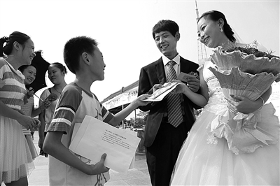 9月20日,光明广场爱心浓浓,20多名贫困和留守儿童领取了书包、学习机等学习用品;到此留影的新郎新娘们则购买“爱心妈妈”公益明信片作最好的结婚留念……当日,市关工委、市妇联、市邮政局在这里联合举行了“海信杯·爱心妈妈”公益明信片发行仪式。