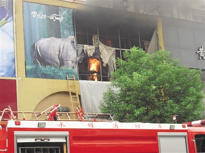 9月22日下午2点半左右,记者接到热线电话称,市中区吉品街某家专卖店二楼发生火灾。当记者赶到现场时,滚滚浓烟正从该专卖店二楼涌出,从楼下可以看到,二楼的火势依然凶猛,火苗足有一人高。据知情人介绍,导致火灾的可能是电路问题,为此旁边的几家店铺也慌忙切断了电源,事故未造成人员伤亡。 (记者 孙雪 特约记者 张潇艺 摄)
