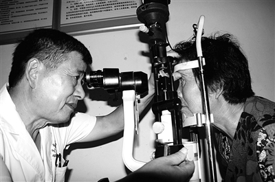 9月25日,在台儿庄区人民医院眼科义诊处,医师在为老年白内障患者进行裂隙灯检查。台儿庄区引进国际先进设备,力邀国内知名医学专家,面向全区举行了眼科大型免费义诊活动,并对首批符合条件的300名白内障患者实施慈善免费手术。慈善救助对象为参加枣庄市新农合、城镇医疗保险或者职工医疗保险的患者,特别优先补助孤寡老人、五保户及持贫困证明的患者。