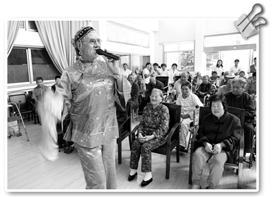九九重阳节到来前,温暖老年艺术团为仁和托养康复中心的老人们表演了歌曲、戏曲、武术等精彩节目。被称为“俄罗斯美女”的77岁的吕传友男扮女装表演的《王婆骂鸡》,更是迎来了阵阵喝彩,逗得老人们合不拢嘴。
