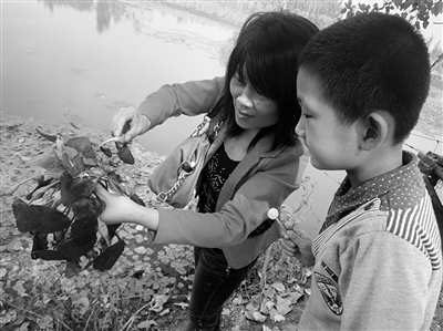 10月13日,许多市民利用周末时间去风景区游玩,采摘菱角。
