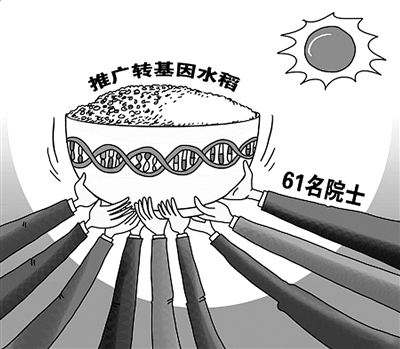 10月19日,“全国首届黄金大米品尝会”在武汉华中农业大学举行,260多名转基因铁杆支持者参加了活动方组织的报告会,并参加了“转基因大米晚宴”。中国科学院院士、美国科学院外籍院士、华中农业大学生命科学学院院长张启发透露:今年7月,我国61名两院院士联名上书国家领导人,请求尽快推进转基因水稻产业化,否则“再迟缓就是误国”。