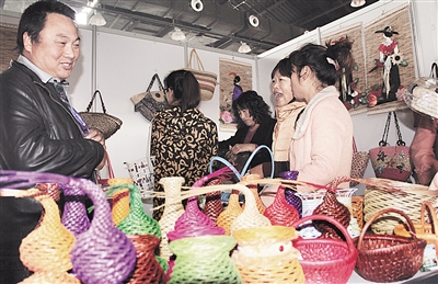 10月29日,游客在选购莱州草编工艺品。当日,为期5天的2013中国·台儿庄古城非物质文化遗产博览会落下帷幕,据初步统计,非博会期间,累计参观人数达到7.2万人次,成交额380万元,实现综合收入890万元。