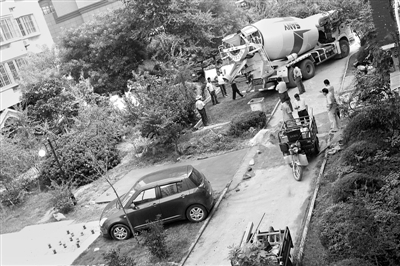 据了解,9月中旬的一天,小区里来了一辆大型搅拌机。这辆搅拌机直接开到2号楼楼前,在几位居民的指挥下,这辆搅拌机停在2号楼东单元楼前的草地上,水泥混凝土一泻而下浇筑在公共绿化带上。不一会儿功夫,几个工人和居民便在公共绿化带上开辟出了一块私人停车位。